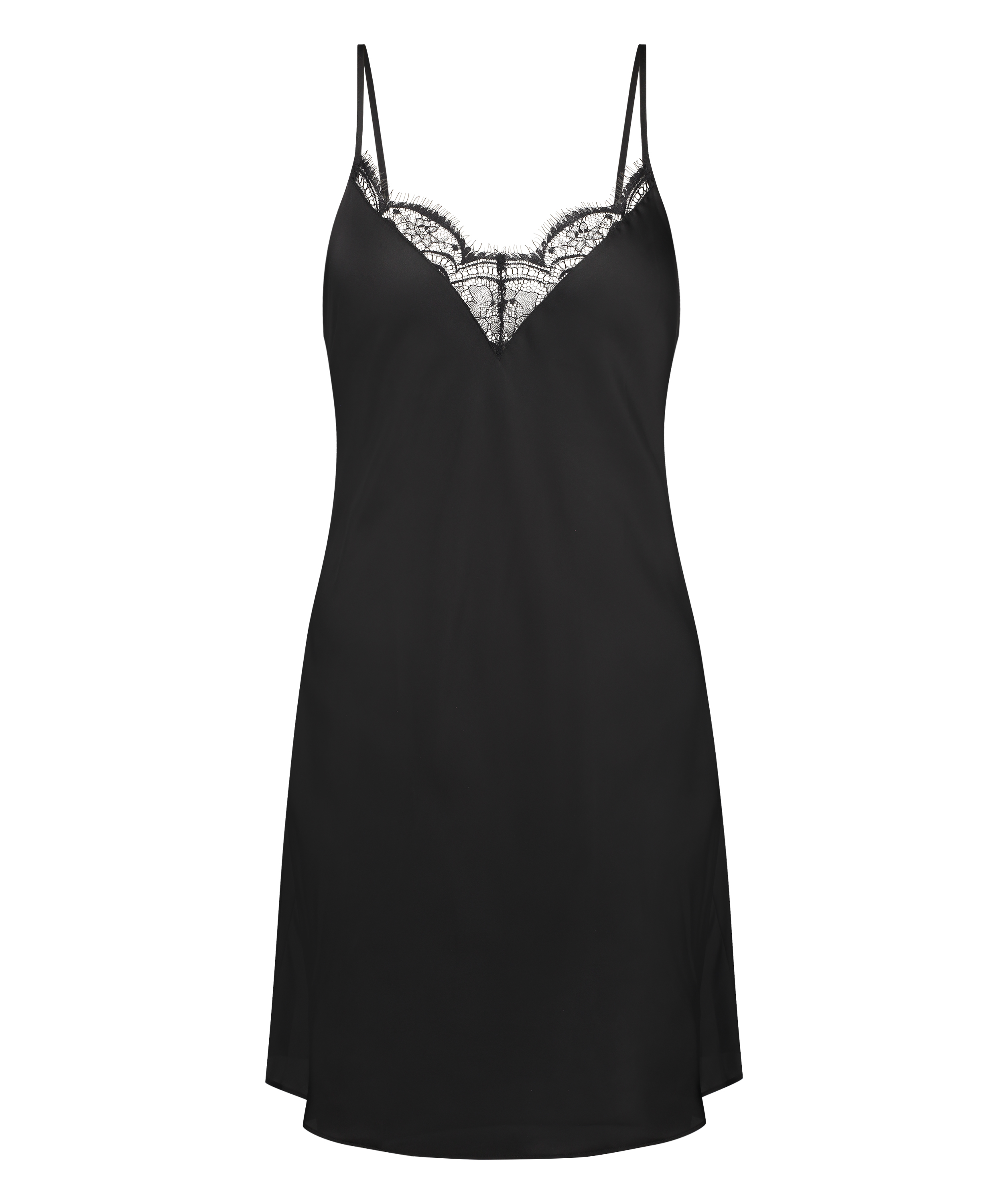 Deze slipdress is een musthave voor je elegante collectie! Hij is gemaakt van satijn, heeft een schitterende v-hals en prachtige kanten details. Combineer hem met een bijpassende kimono voor een complete look.