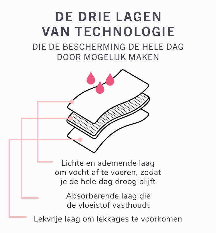 ● Lekvrij: De absorberende technologie met meerdere lagen zorgt ervoor dat je je geen zorgen hoeft te maken over lekkages.