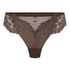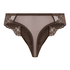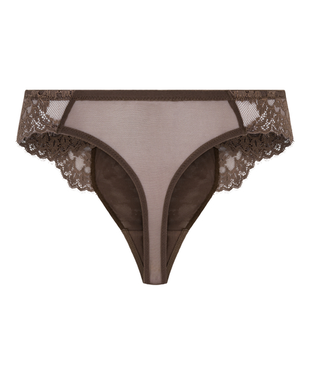 Trendy string dat is uitgevoerd met transparant kant aan de voorzijde en mesh aan de achterzijde. Aan de voorzijde zit in het midden een knoopje.