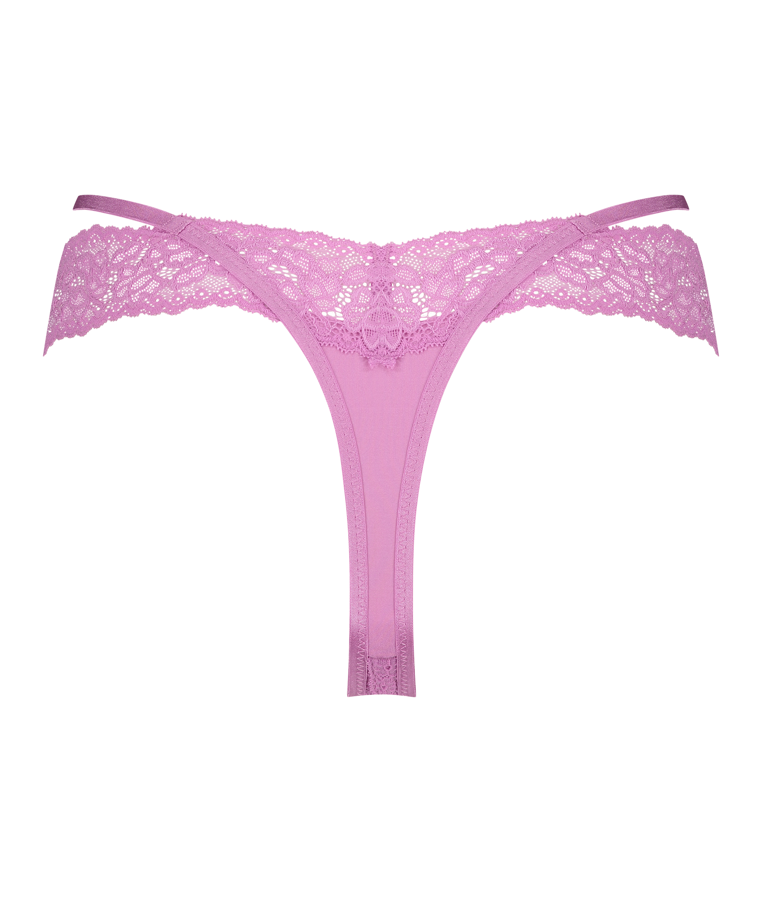 Deze extra lage v-string heeft een extra leuk detail! De slip heeft strappy details en bevat veel kant. Match met een bijpassende bralette of bh voor een complete set.