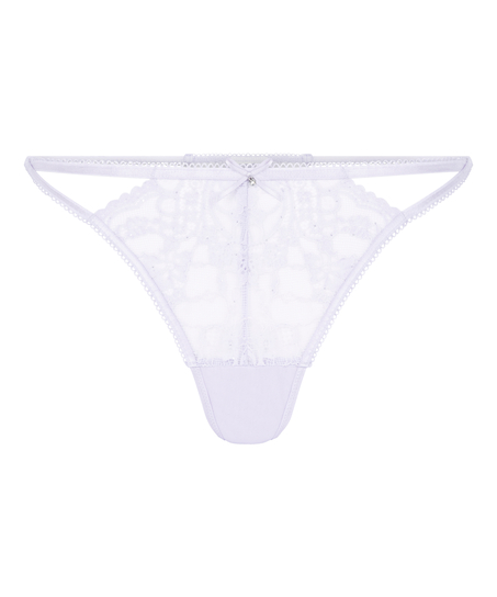 Geef je over aan elegantie met deze string! Het voegt een romantisch tintje toe, ontworpen voor een slanke pasvorm. Het juweelaccent in het midden en de glanzende glitter zorgen voor sprankeling. Combineer met de bijpassende items voor een complete set.