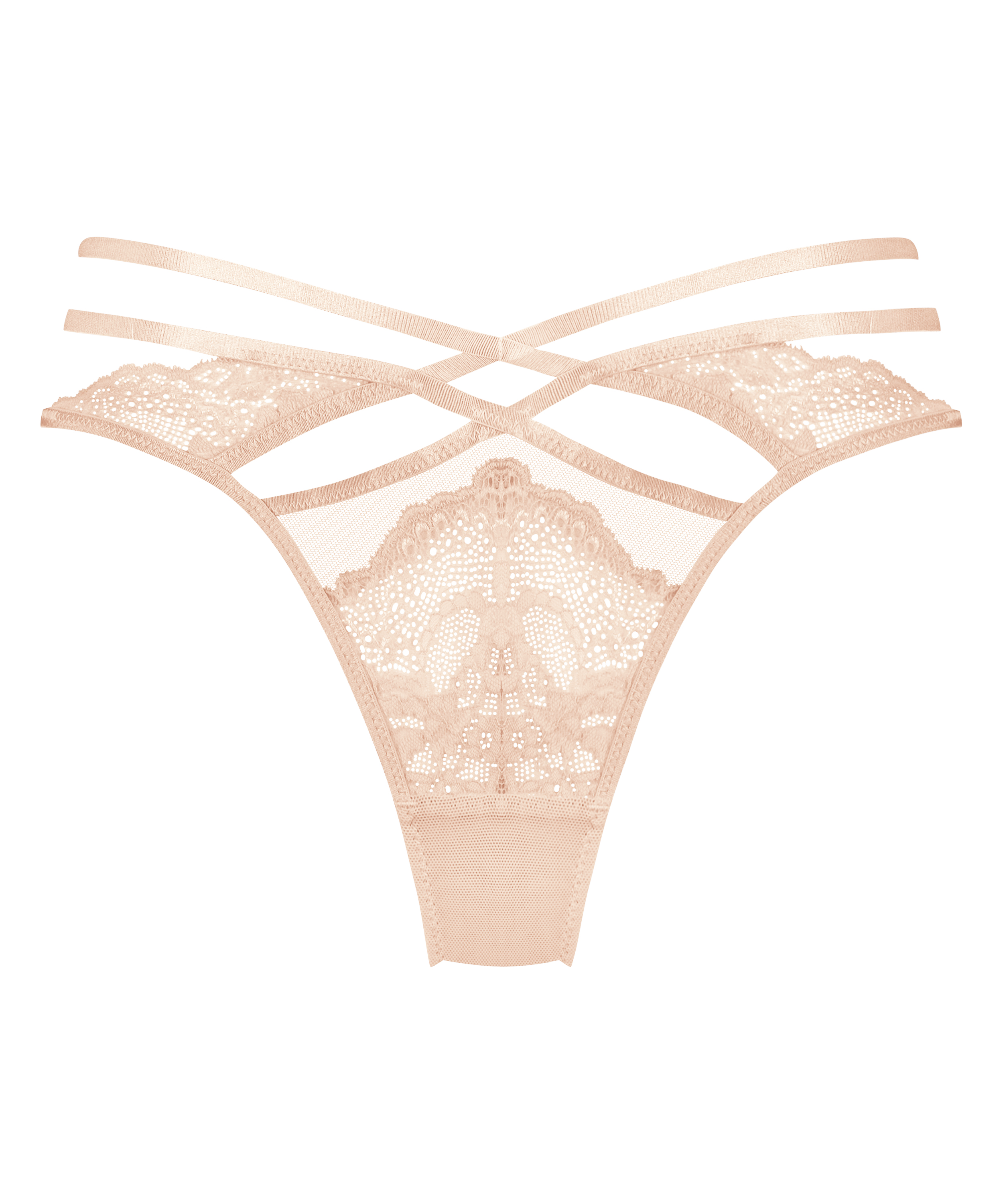 Breng je lingerie naar een hoger niveau met deze prachtige string! Het heeft kanten details aan de voorkant en een sexy strappy ontwerp rondom. Combineer deze string met een van onze huidige favorieten!