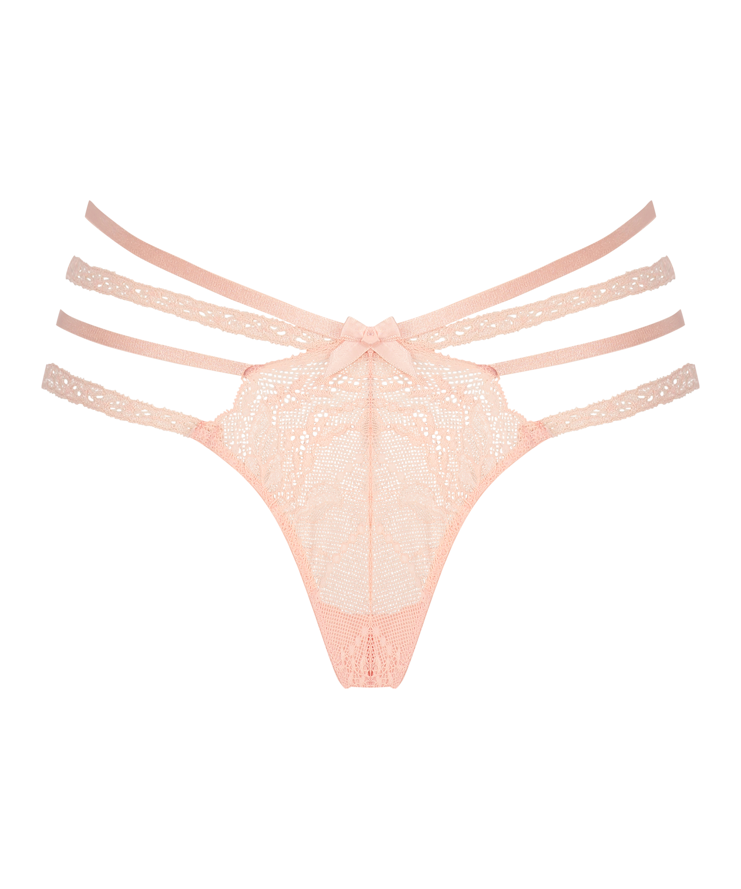 Voel je super sexy in deze string! Hij is voor een groot deel van kant, er zit een leuk strikje aan de voorkant en de strappy details zijn de finishing touch. Combineer met je eigen favoriete items!