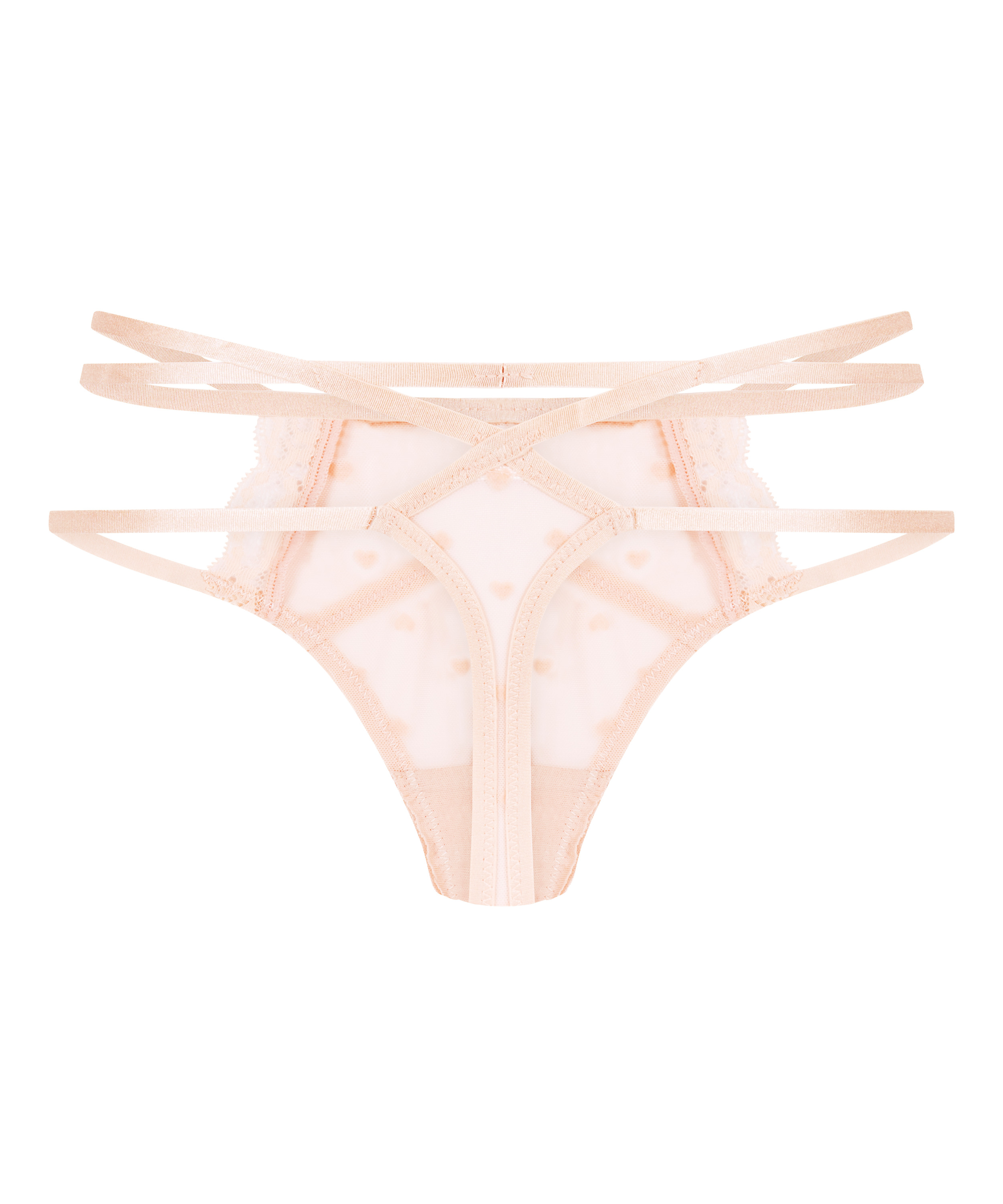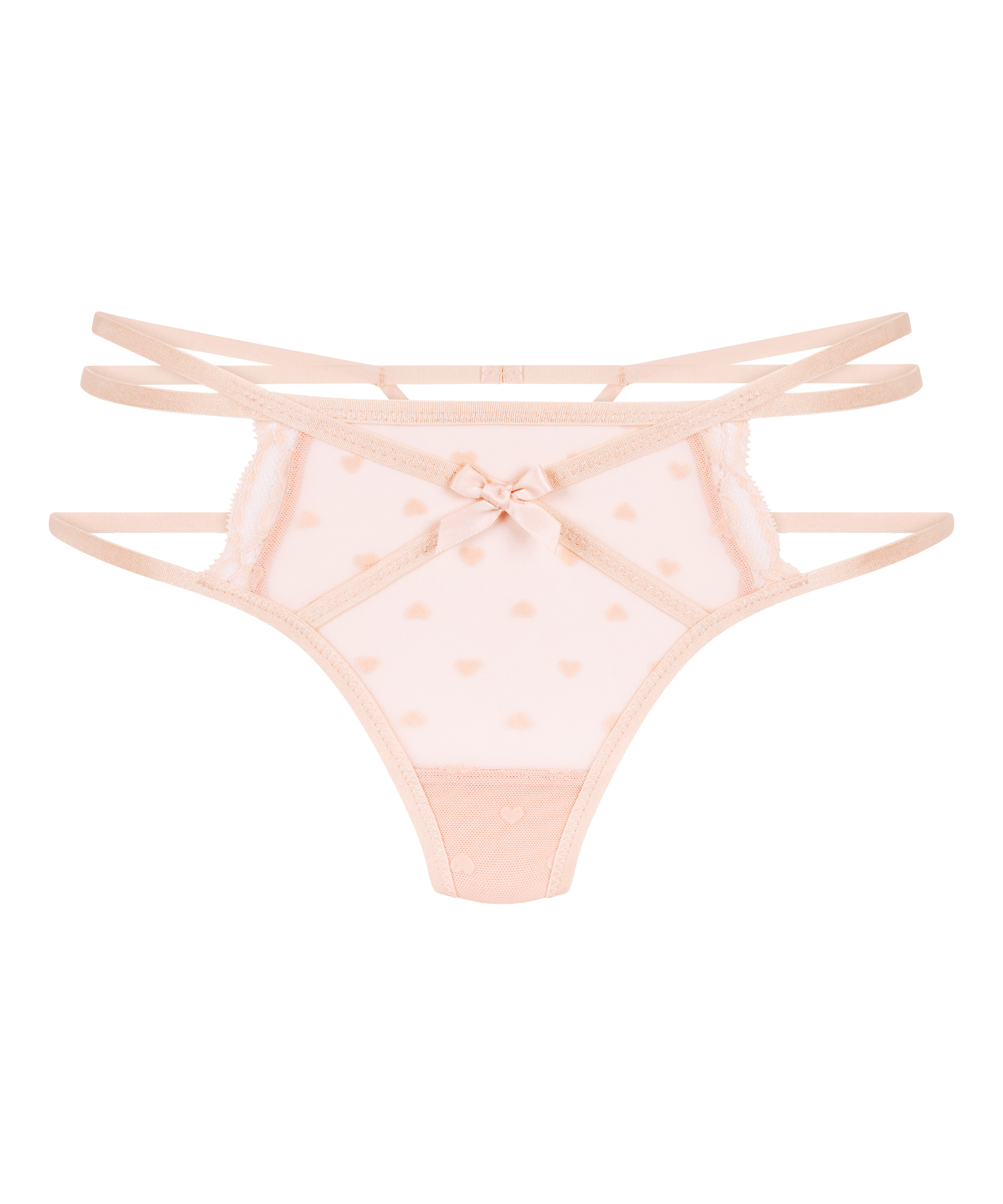 Voel je sexy in deze mooie string! Hij heeft veel kant, een schattig strikje voorop, en leuke strappy details. Combineer met bijpassende items voor een leuke set!