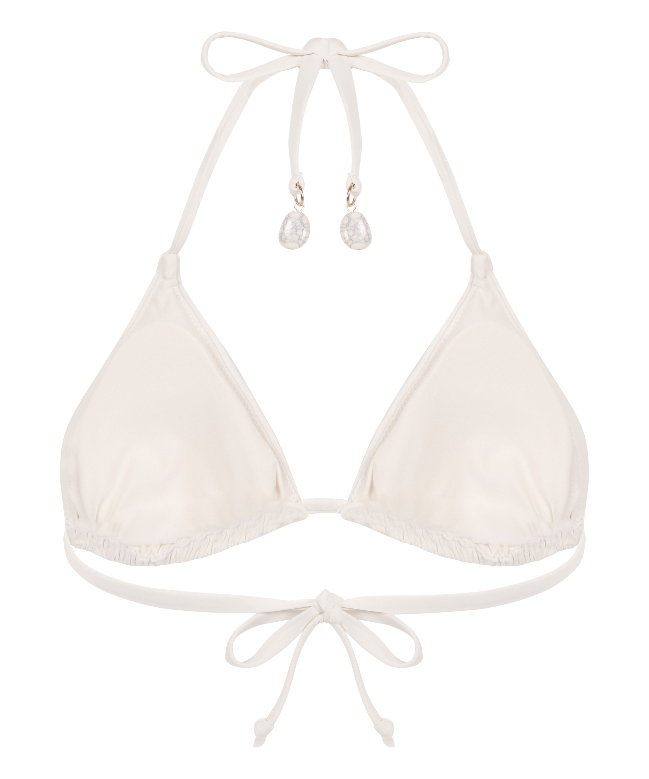 Verhoog je zwemkleding met deze delicate driehoekige top, ontworpen voor een flatterende en moeiteloze pasvorm. Het glinsterende bloemendetail voegt een vleugje elegantie toe en vangt het licht prachtig. Combineer het met een bijpassend broekje voor een gecoördineerde en opvallende strandlook! Onze triangelbikinitops zijn volledig verstelbaar met een halternek en striksluiting op de rug, zodat je zelf de gewenste cupbedekking kunt bepalen. Wil je meer bedekking, kies dan een maat groter.