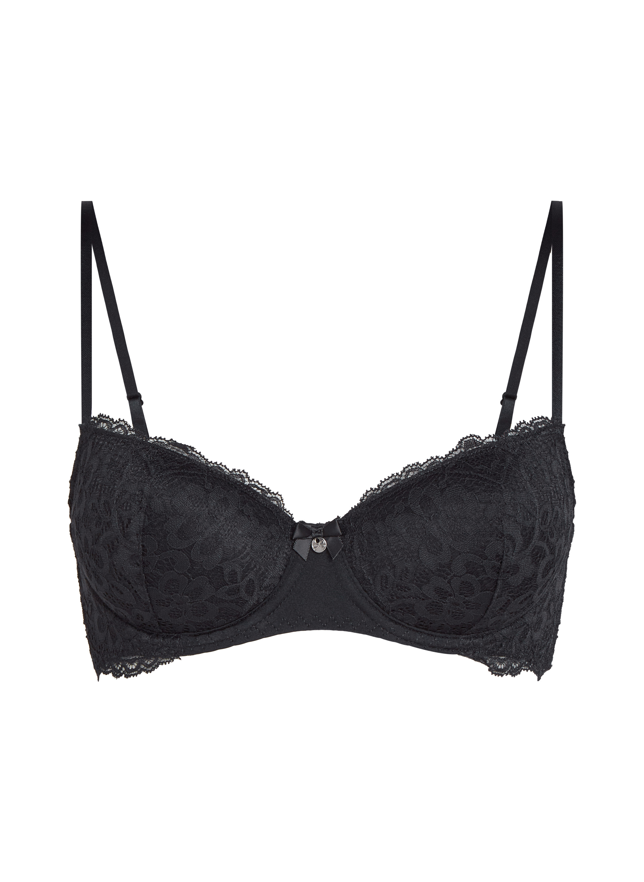 Deze beugel bh is volledig van kant. Dit maakt het super sexy! De bh is afgewerkt met een strikje tussen de cups. Combineer het met de bijpassende slip voor de complete look!