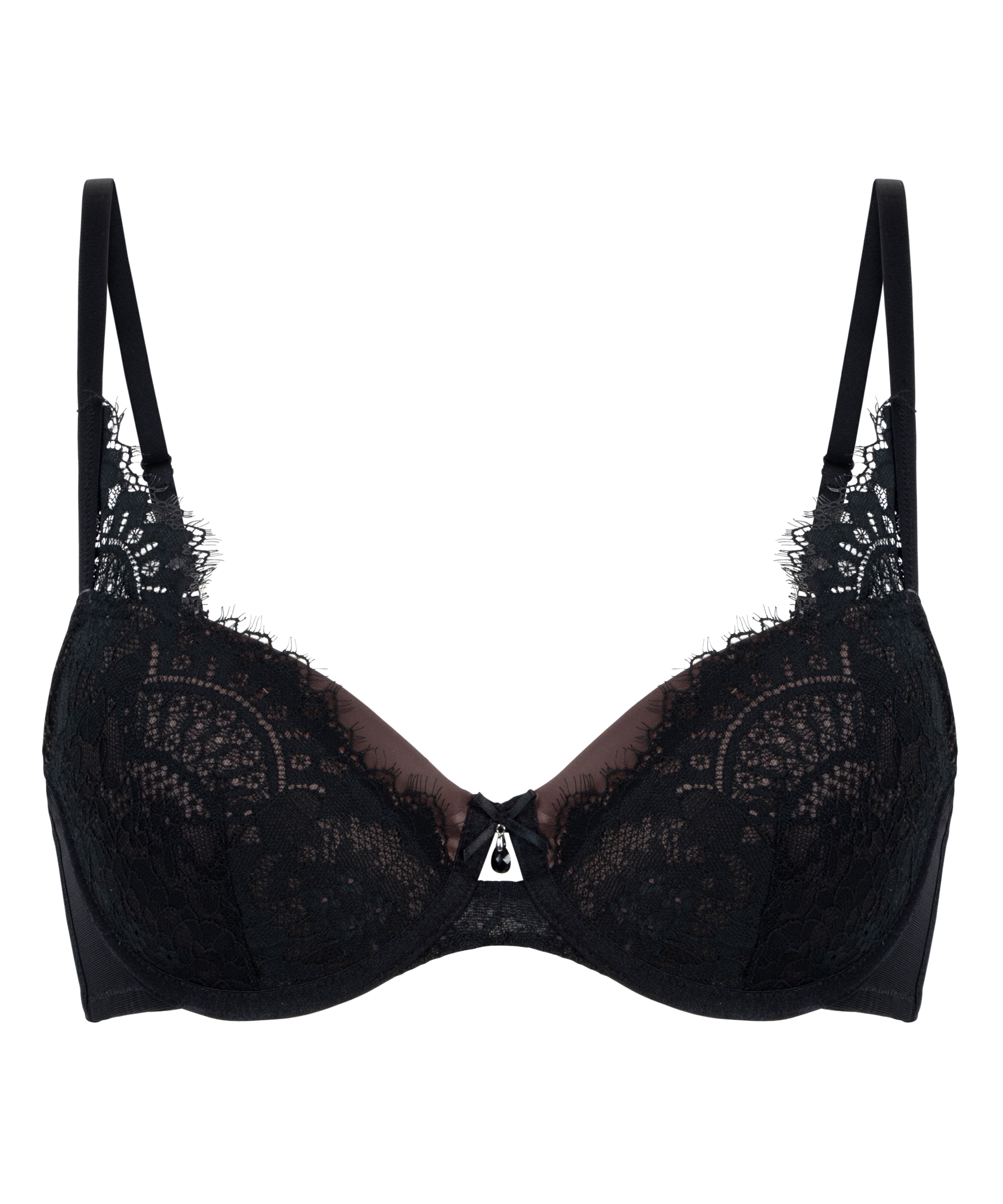 Voel je onweerstaanbaar in deze zeer sexy voorgevormde beugel bh met kanten details. Deze bh heeft meervoudig verstelbare bandjes, een kanten achterkant, een mooi strikje en stras details. Ga voor een adembenemende set en combineer met een bijpassende slip voor de ultieme romantische look.