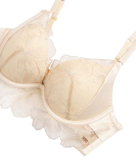 Verhoog je lingeriecollectie met de Emilia Padded Plunge Push-Up longline bh! Met delicaat bloemenborduursel en een gestructureerd ontwerp biedt het een gebeeldhouwde, flatterende pasvorm. De gewatteerde beugelcups en verstelbare bandjes zorgen voor ondersteuning en comfort, perfect voor een look die zelfvertrouwen en charme uitstraalt!