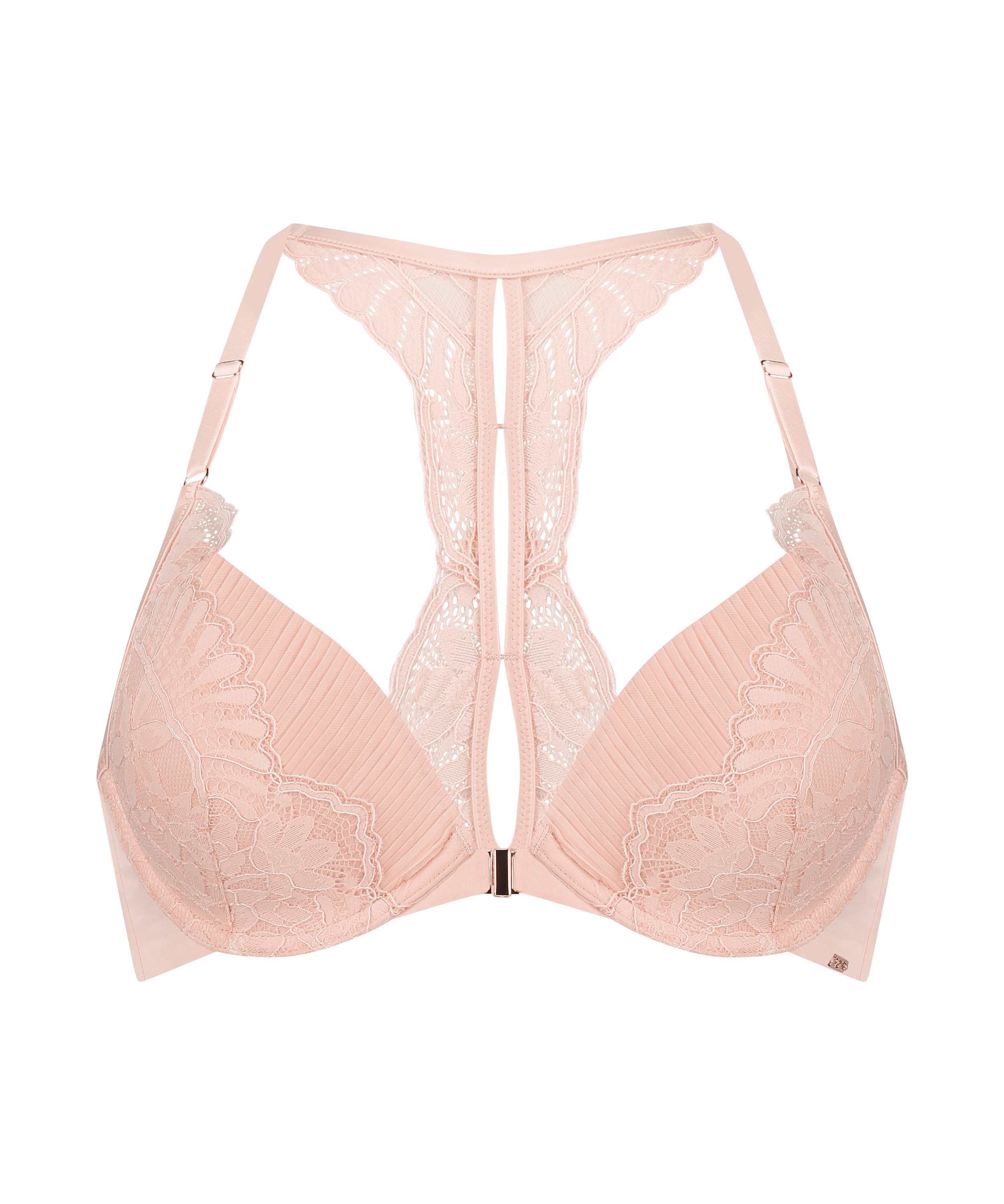 Geef je zelfvertrouwen een boost in deze prachtige bh! Deze bh heeft een prachtige halterrug en perfect plunge cups. Het is bedekt met kanten uitgesneden details om de schoonheid ervan te vergroten. De beugel biedt ondersteuning en de verstelbare bandjes geven een perfecte pasvorm. De sluiting is aan de voorkant voor gemakkelijk dragen. Deze bh maakt deel uit van de Noir collectie en kan gecombineerd worden met een bijpassende slip!