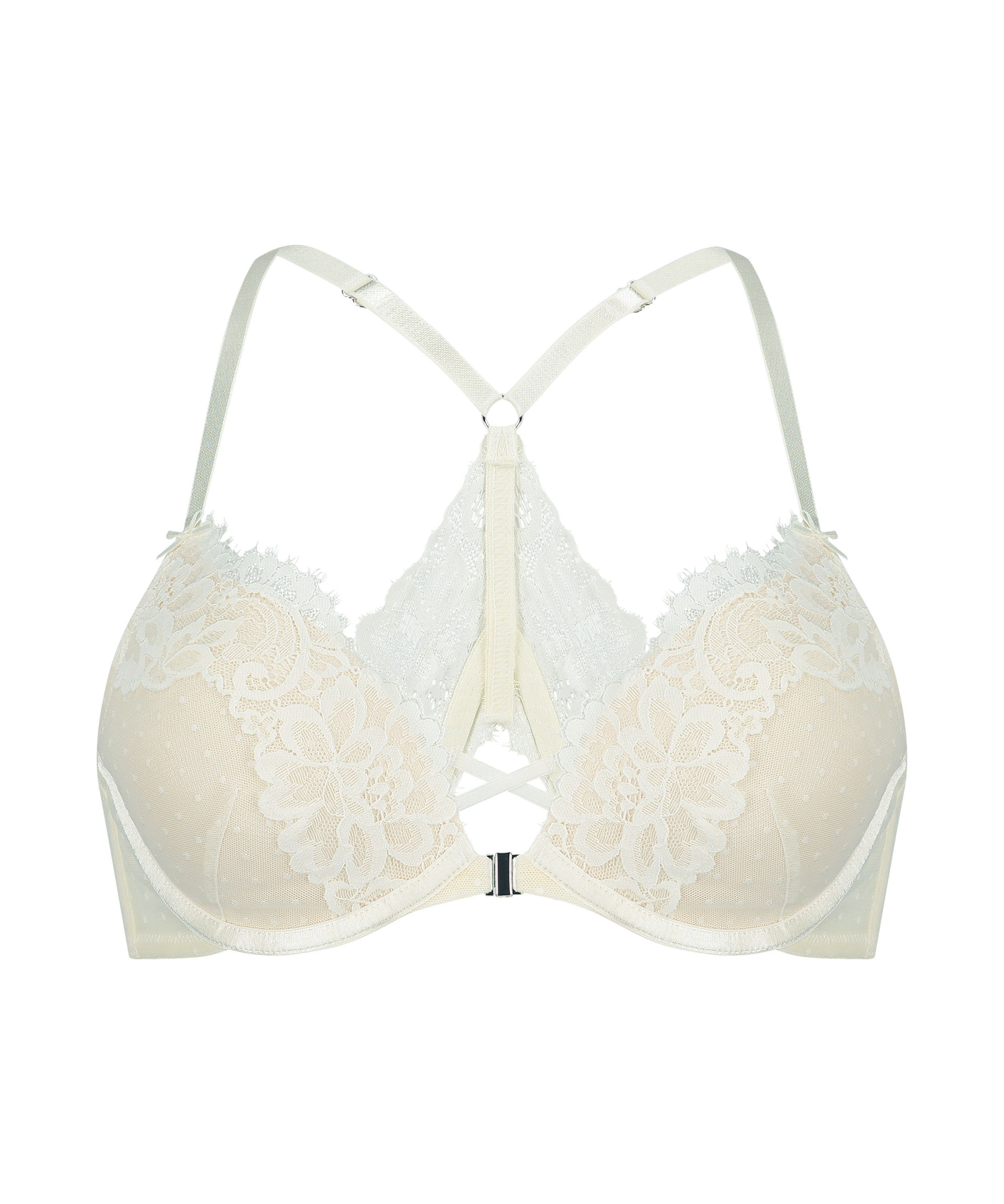 Breid je lingeriecollectie uit met onze Harmony bh! Met zijn gewatteerde push-up cups versierd met kant en een delicaat kanten ontwerp op de rug straalt deze bh elegantie en charme uit. Met een handige sluitclip aan de voorkant is hij zowel stijlvol als praktisch. Maak de set compleet door de bh te combineren met de bijpassende slip voor een prachtig ensemble.