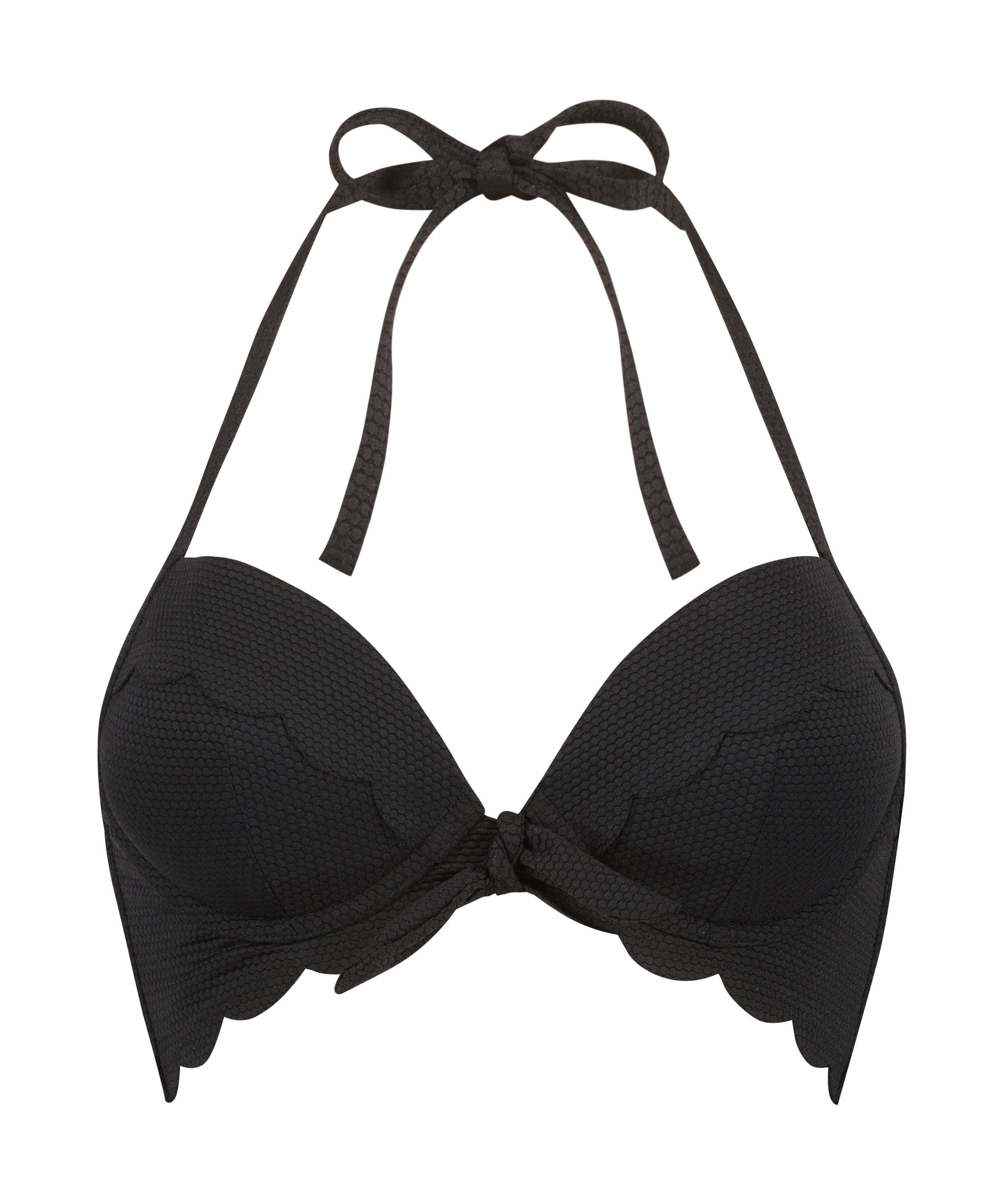 Voorgevormde push-up beugel bikinitop Scallop Cup A - E - Zwart