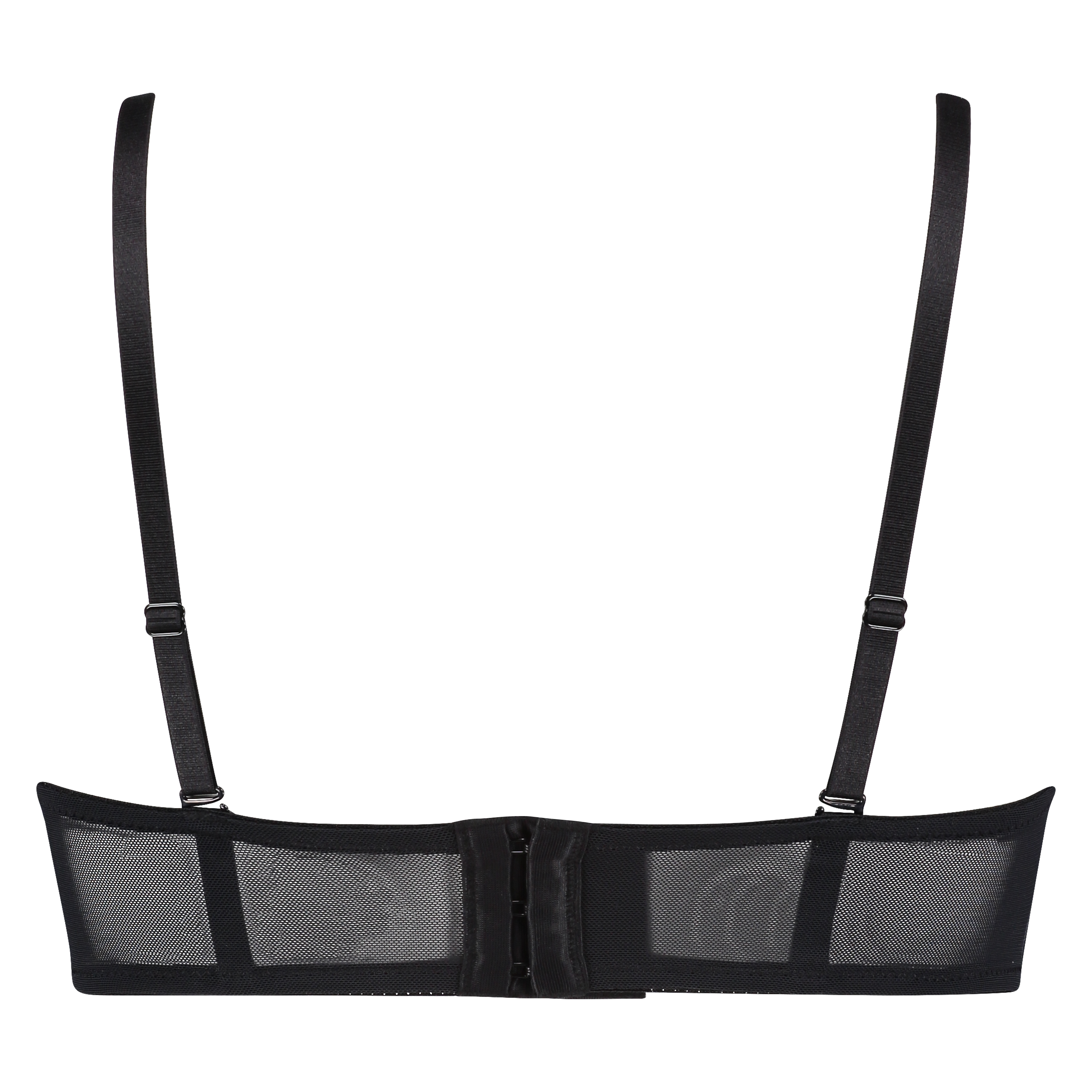 Deze voorgevormde beugel bh is uitgevoerd met kant op de cups. De schouderbandjes zijn afneembaar, waardoor de bh strapless te dragen is. Afgewerkt met een strikje tussen de cups.