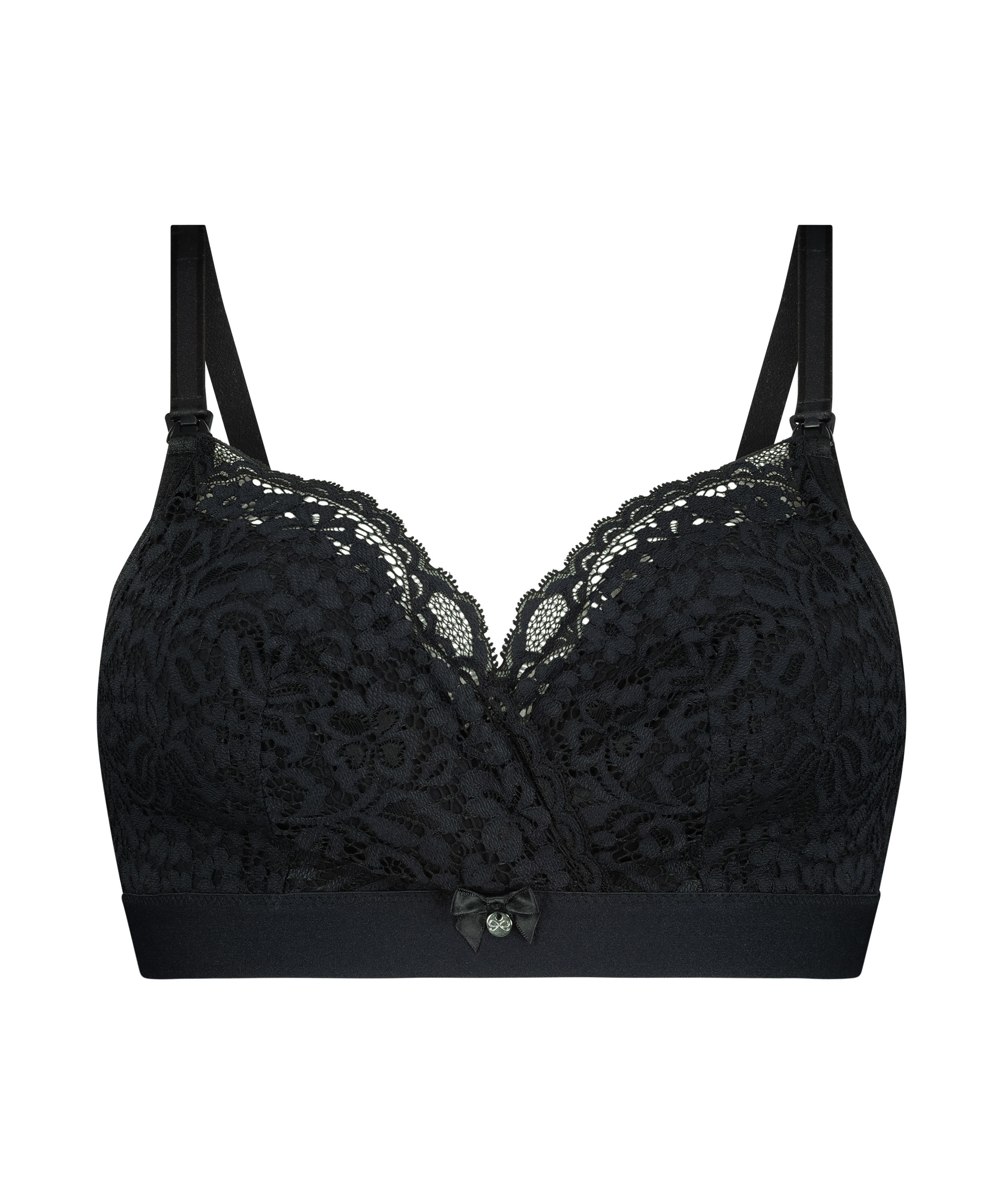 Deze voorgevormde voedingsbh is niet alleen praktisch, maar ziet er ook nog eens mooi uit! De bh is afgewerkt met kant op de cups. De cups kunnen losgemaakt worden om je baby gemakkelijk te kunnen voeden.